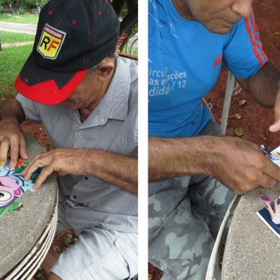 Os idosos tiveram boa aceitação a atividade, foram participativos e em alguns momentos apresentaram um pouco de dificuldade necessitando de um maior auxilio da Terapeuta. Segue as fotos:
